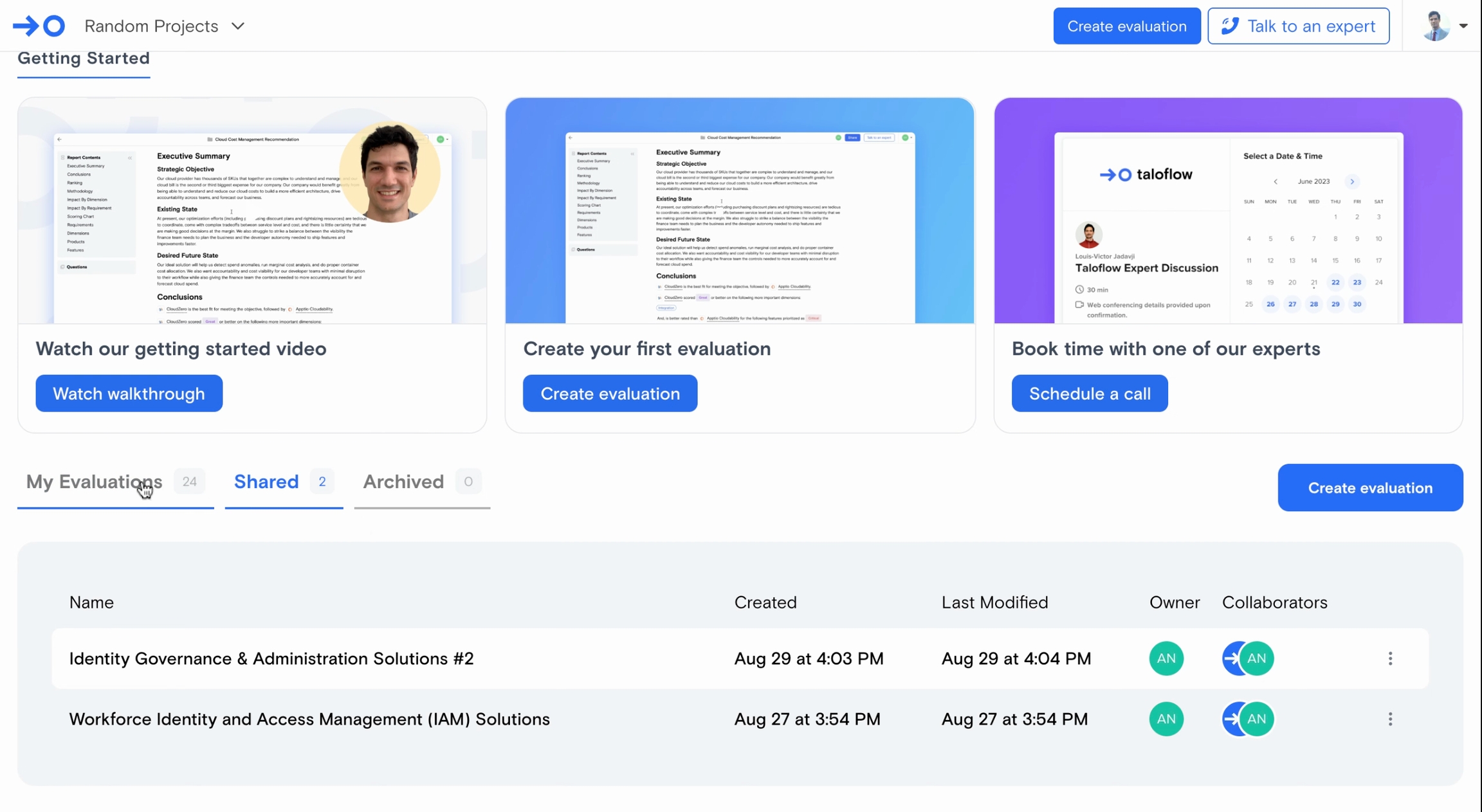 If colleagues have shared evaluations outside your primary workspace, these appear under the Shared Evaluations tab, keeping everything accessible but organized separately.